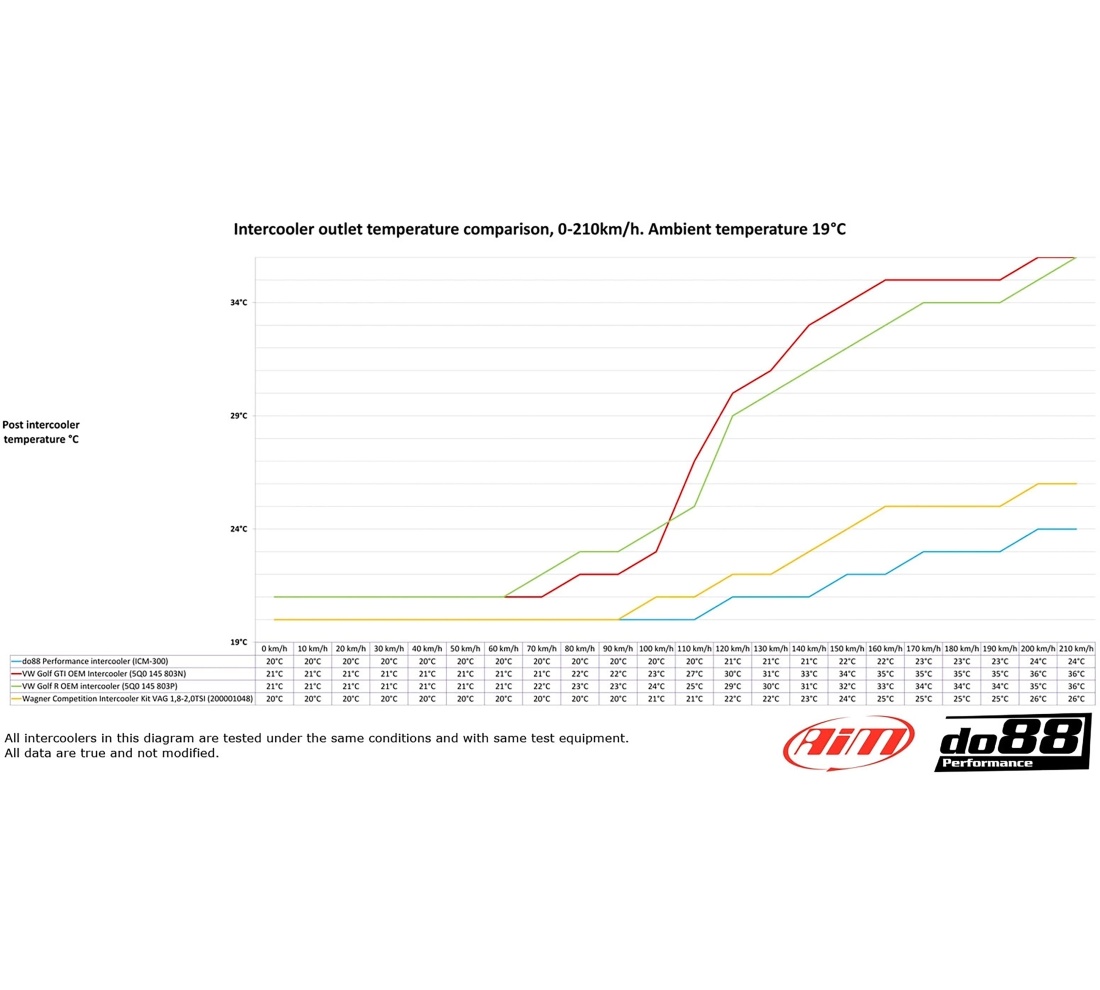 - Post intercooler air temperature at same conditions: 24°C (36°C), do88 12°C lower!